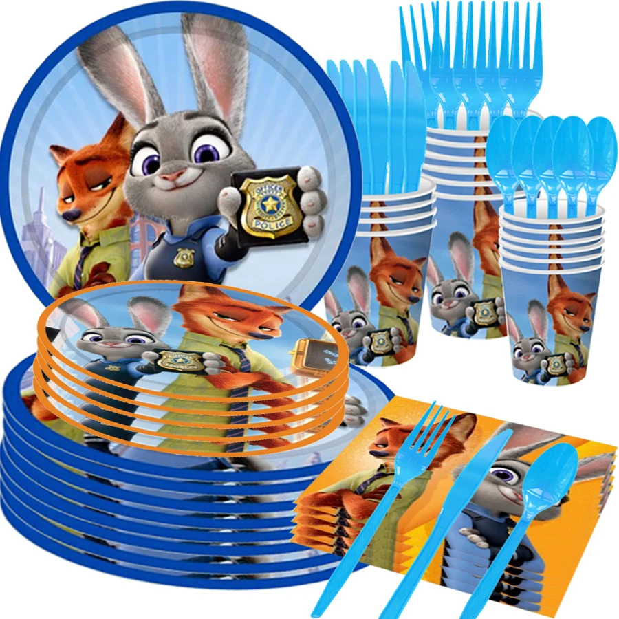 Zootopia Bomboniere Decorazioni Stoviglie Bicchieri di carta Cake Topper Palloncini Tovaglia Banner Adesivi Regalo per feste di compleanno per bambini