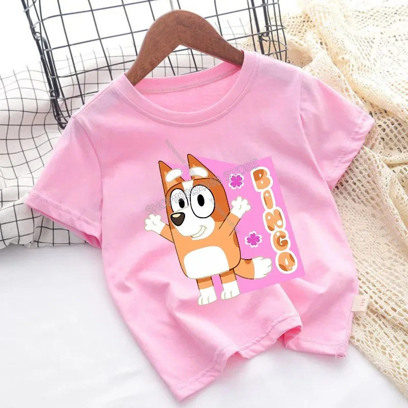 Bluey Bingo Nuova T-shirt Abbigliamento per bambini Ragazza Rosa Base alla moda Top Carino Anime Vestiti Figura di cartone animato Sunmer Tee Regalo per bambini 2025