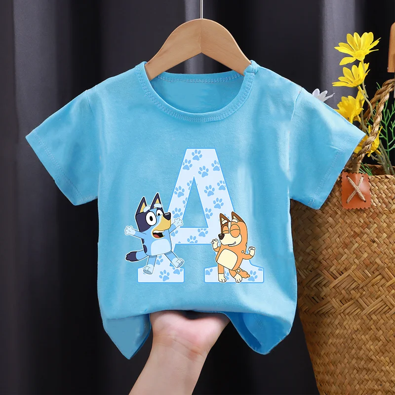 Blueys Bingo Bambini Ragazzi Ragazze T-shirt Vestiti Top Lettera AZ Abbigliamento per bambini Manica corta Estate Regali di compleanno carini
