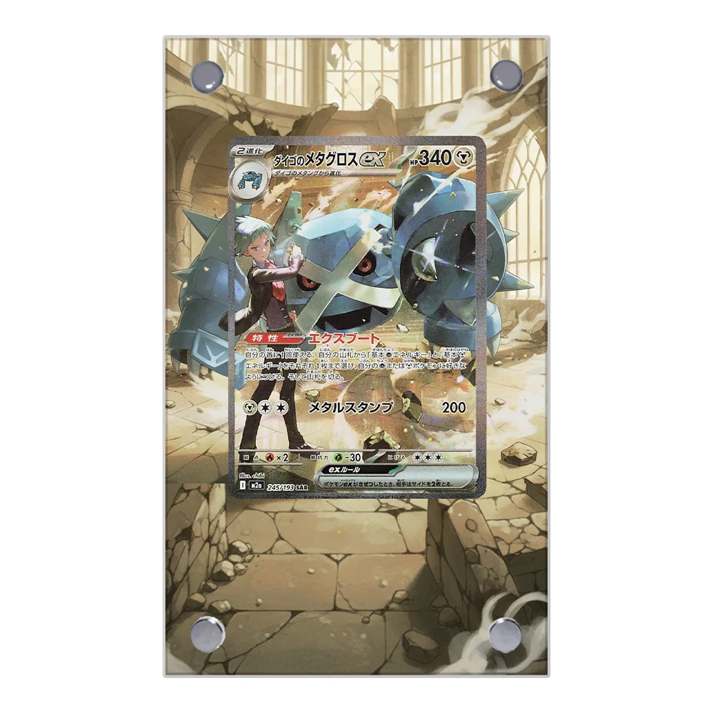 Display artistico per Pokemon Leon Metagross Ex Card Brick PTCG Portachiavi Gioco da collezione Anime Merchandise Custodia protettiva in acrilico