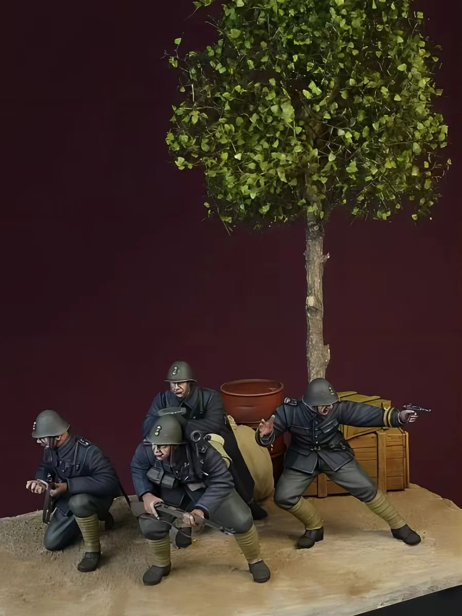 Set di figure di soldati militari in resina 1/35 (4 pezzi) – Kit di stampi bianchi GK, smontato e non verniciato per collezionisti