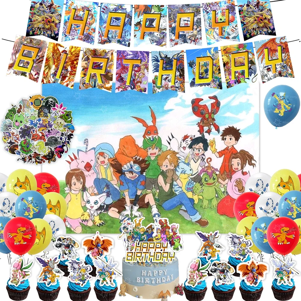 Digimon Decorazione di compleanno Cartone animato Pet Bomboniere Palloncini Sfondo Banner Decorazione torta Forniture per baby shower Regali Giocattoli