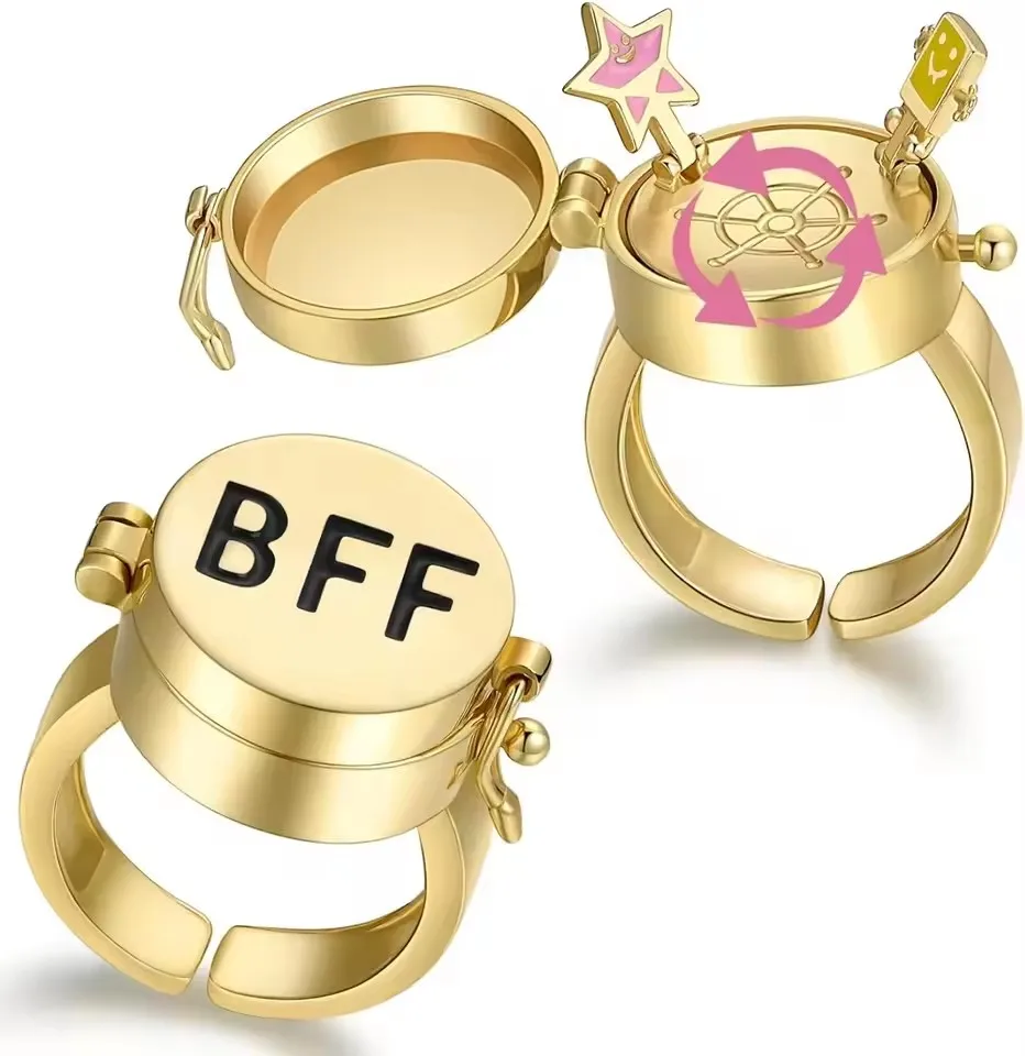 2025 BFF Spongebob Anello Simpatico cartone animato Anime Giocattoli Apertura Ruota regolabile in metallo Gioielli unisex Migliore amico Regali per feste di compleanno