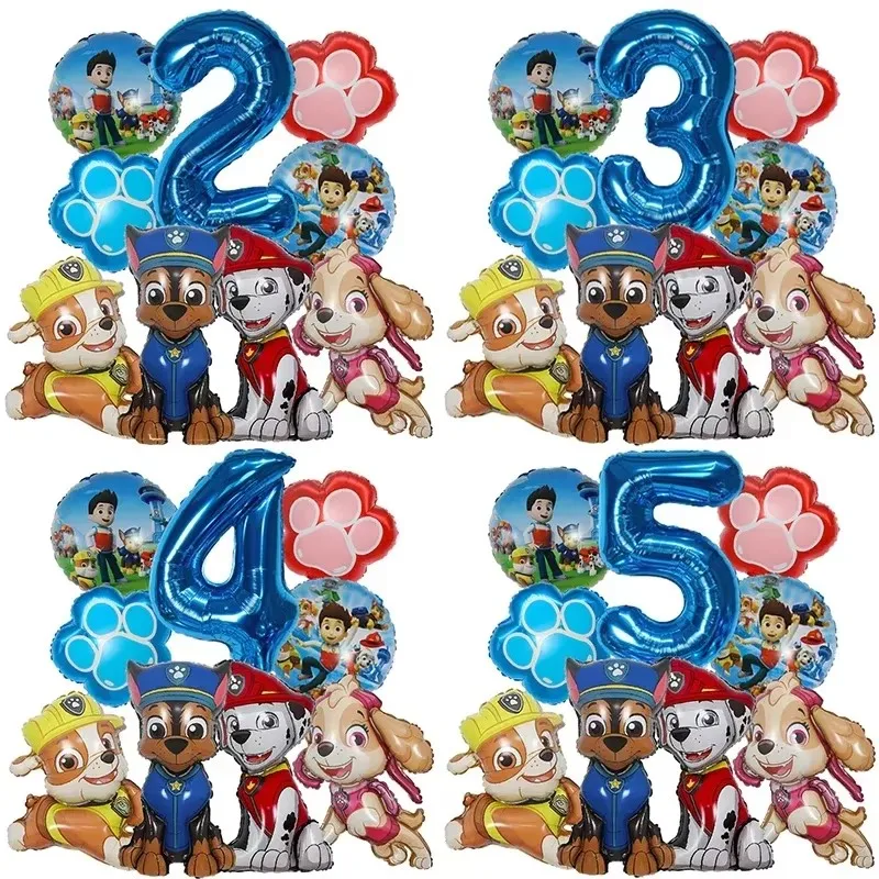 9 pezzi Chase Skye Cartoon Paw Patrol Foil Balloon Numero digitale Forniture Rescue Dog Decorazione festa di compleanno per bambini Regalo per bambini
