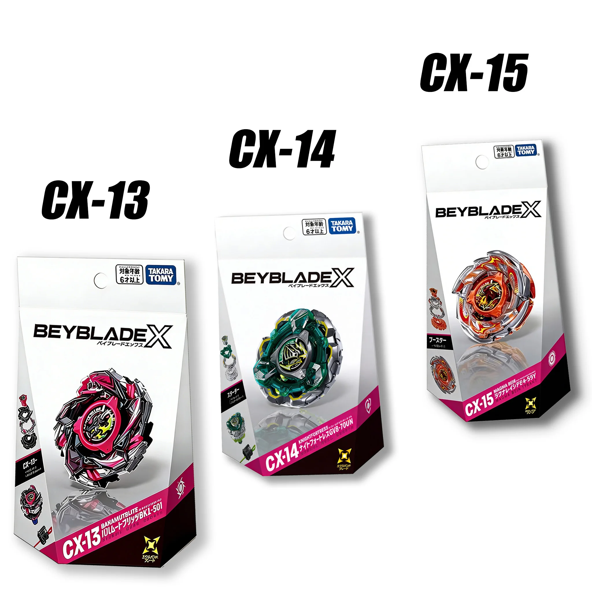 Beyblade Originali: CX-13 Bahamut Blitz BK1-50I / CX-14 Starter Knight Fortress GV8-70UN / CX-15 Booster Ragna Rage FE4-55Y (Scatola Originale)