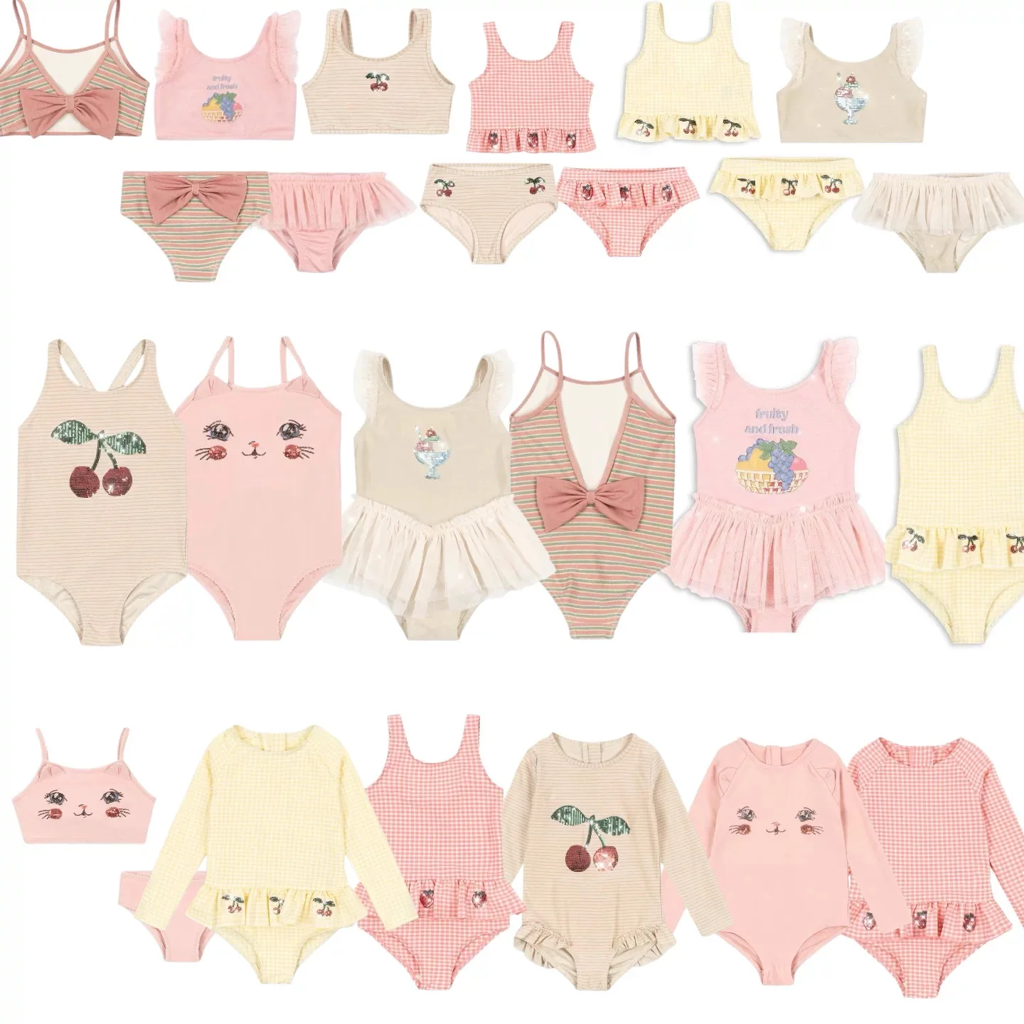Costume da bagno intero per bambina 2026 KS estivo, rosa ciliegia, a maniche lunghe, protezione solare UPF50+, ad asciugatura rapida, per la spiaggia