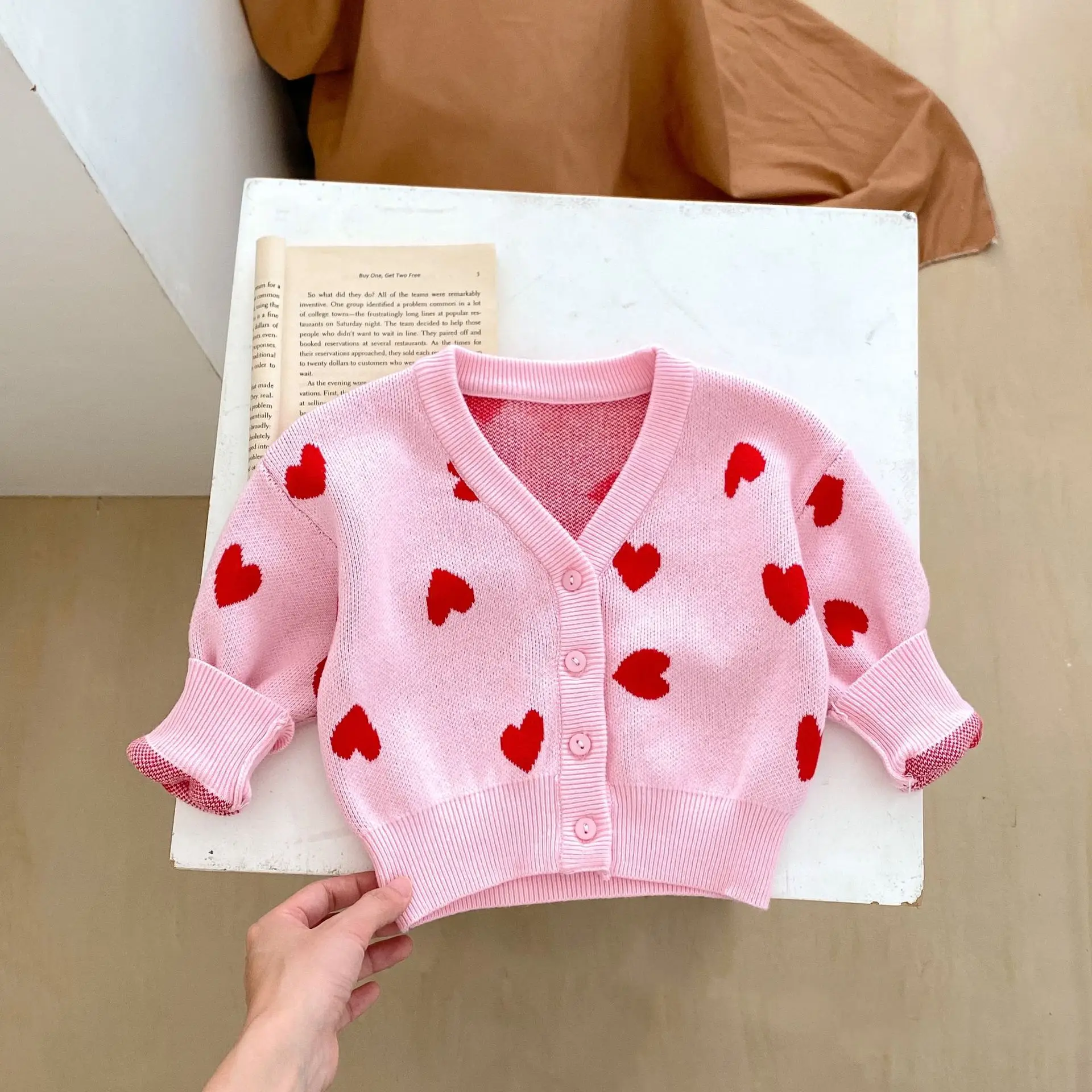 Costume da San Valentino per bambini Cardigan da bambino con scollo a V a cuore rosa Adorabile cardi lavorato a maglia per bambini
