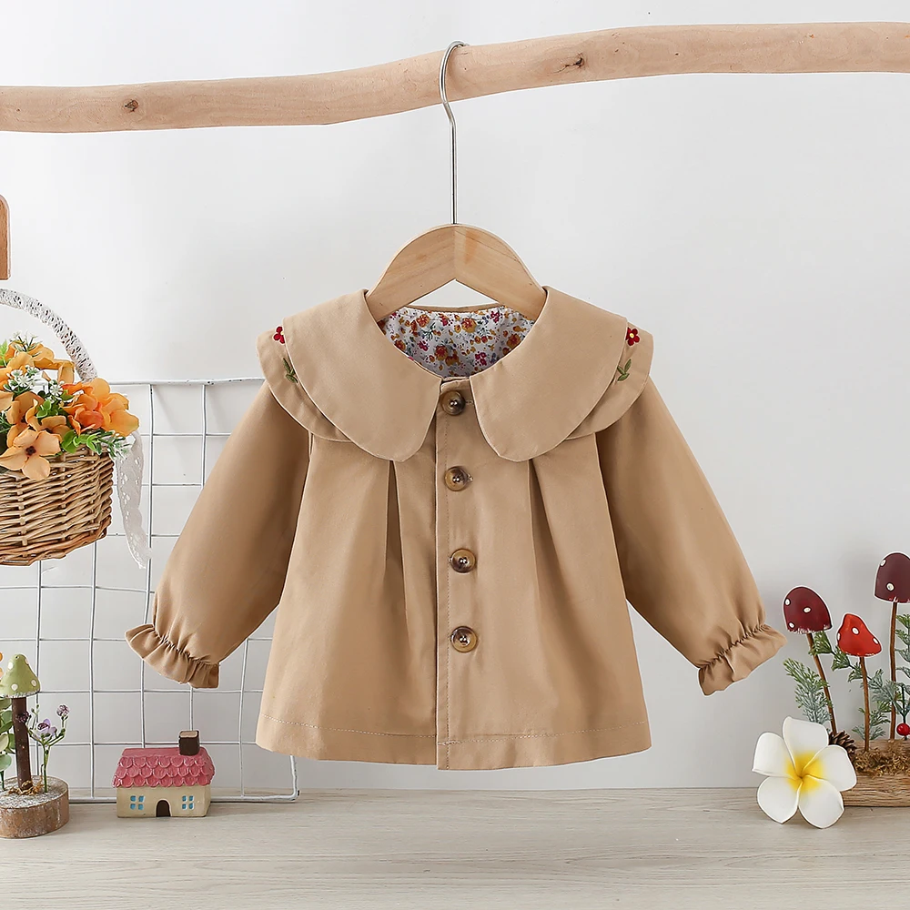 Cappotto da bambina Primavera e autunno Giacca a vento a maniche lunghe con risvolto in cotone tinta unita da ragazza Giacca casual da ragazza carina