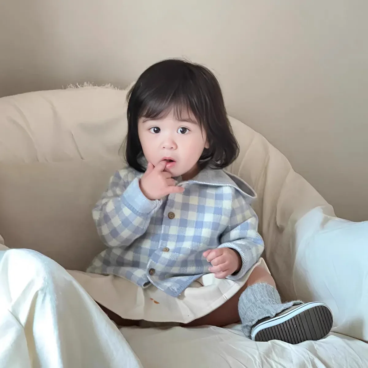 2025 Autunno Nuovo Neonata Cappotto in maglia Bambini Carino Maglione scozzese Infantile Cardigan lavorato a maglia Ragazza del bambino Giacca con cappuccio Abbigliamento per bambini