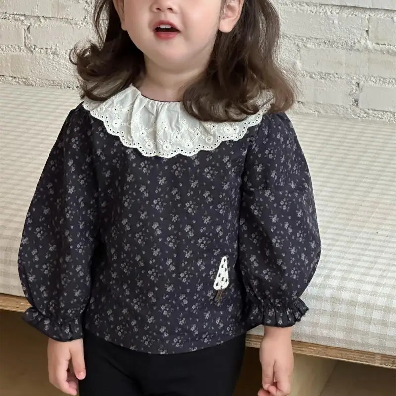 2025 Autunno Nuova neonata Camicie floreali Bambini Top a maniche lunghe Camicie in cotone infantile per ragazze Tee Abiti da principessa per bambini