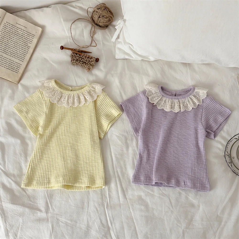 2024 neonati in puro cotone magliette a maniche corte camicia Casual stile coreano magliette morbide per neonate o-collo Pullover Tees Toddler Top