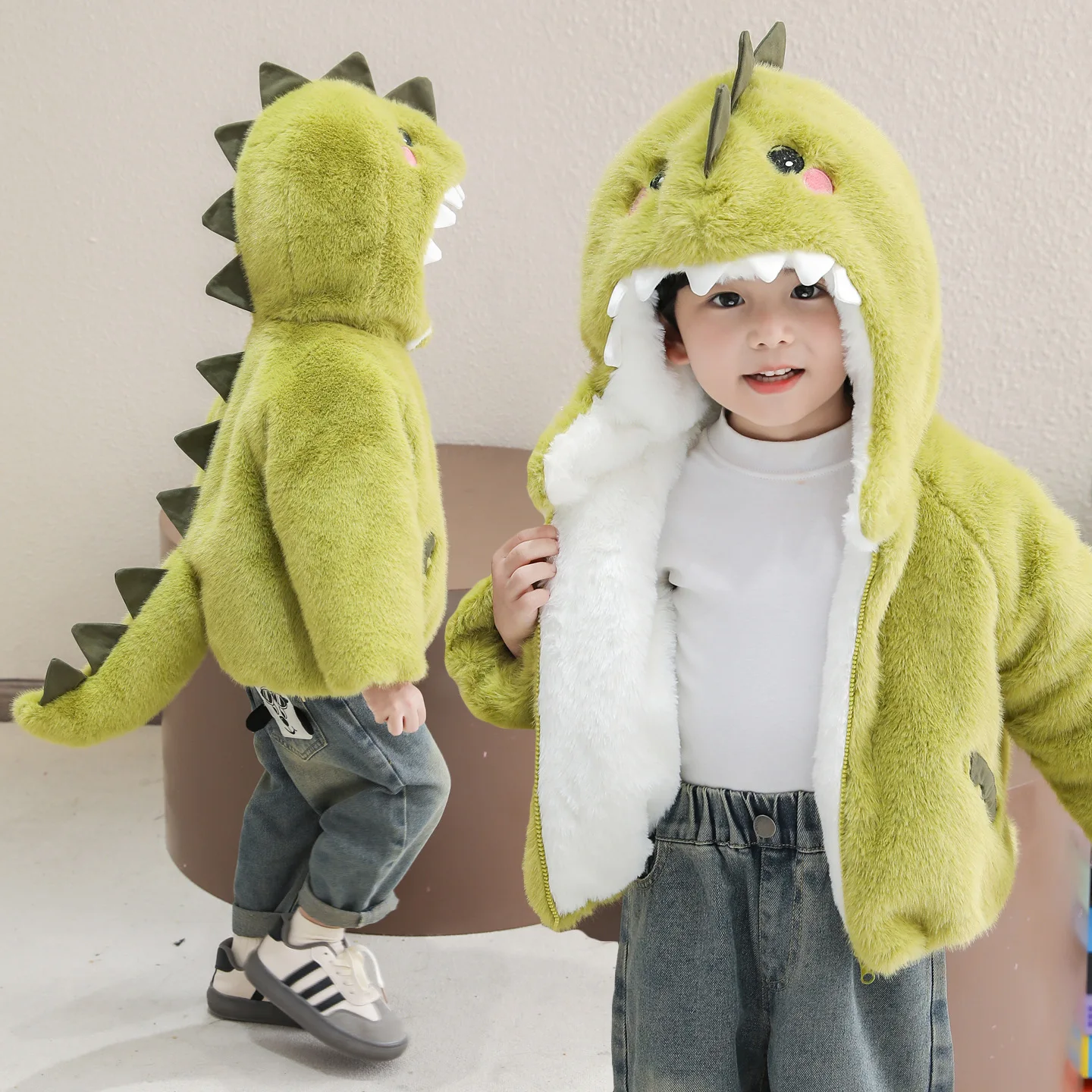 Giacca in velluto per ragazzi 2025 Primavera Autunno Inverno Nuovi bambini Cartoon Dinosauro Peloso Elegante Ragazzi Baby Cute Top