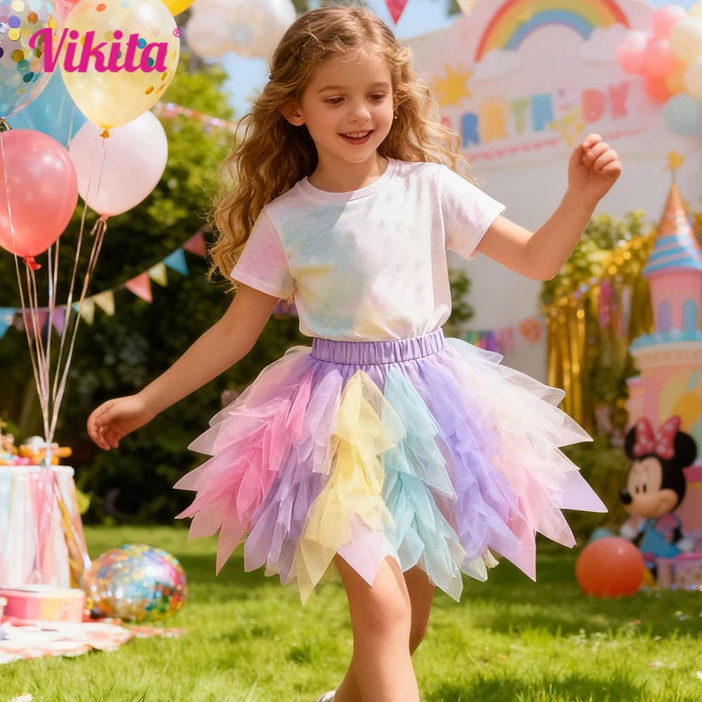 VIKITA Ragazze Arcobaleno Multicolor Tutu Gonna Bambini Colorato Tulle Balletto Danza Principessa Festa Minigonna a Strati 3-10Y Vestito Carino