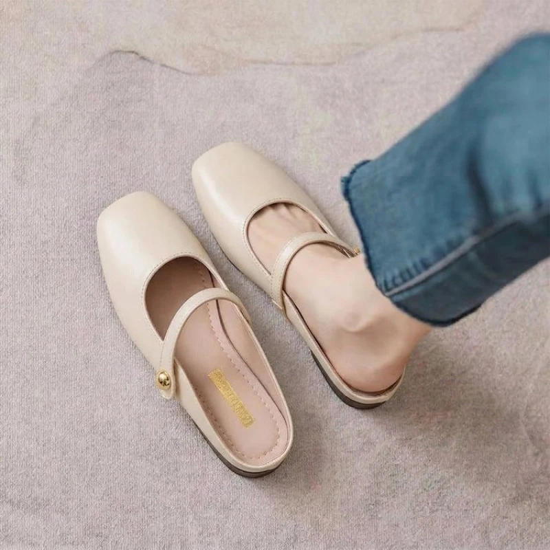Scarpe da donna eleganti francesi con punta quadrata Mary Janes Scarpe casual carine da donna retrò con tacco basso Décolleté da esterno con suola morbida