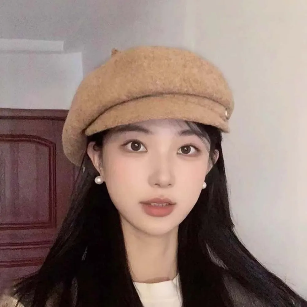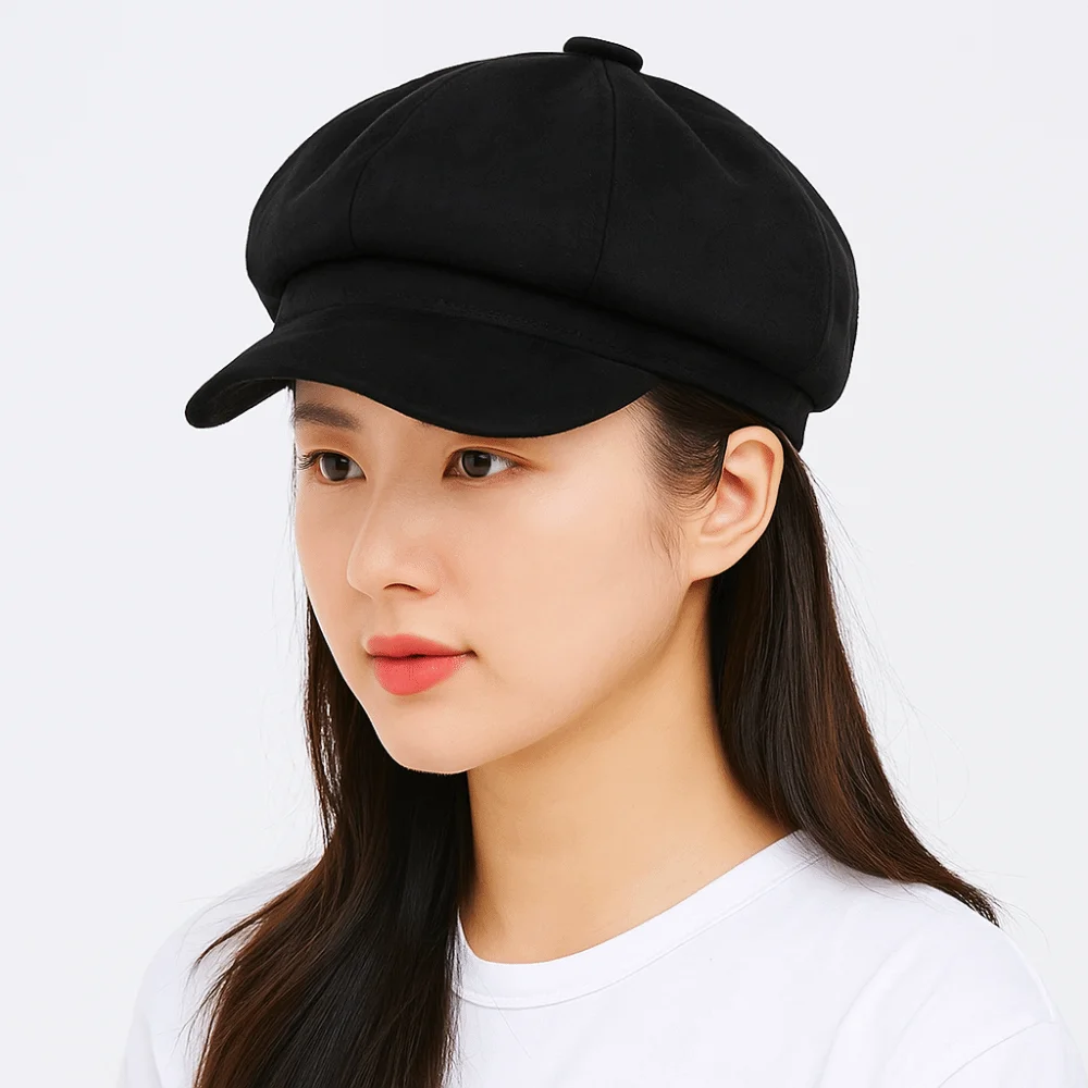 Berretto Casual Stile Coreano in Camoscio Tinta Unita, Cappello Ottagonale Britannico Caldo, Berretto da Pittore JK per Uso Quotidiano