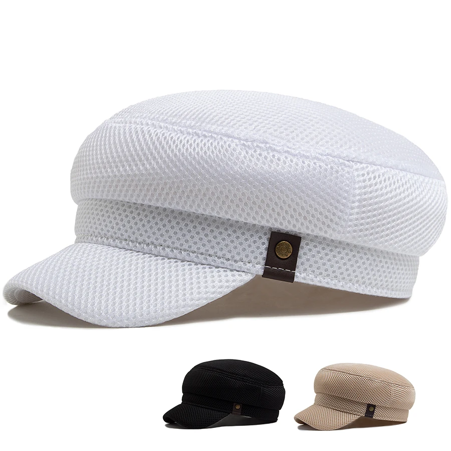 Berretto da strillone da donna primavera autunno cappello piatto in rete traspirante berretto da donna moda vintage berretto militare piatto casual per donna