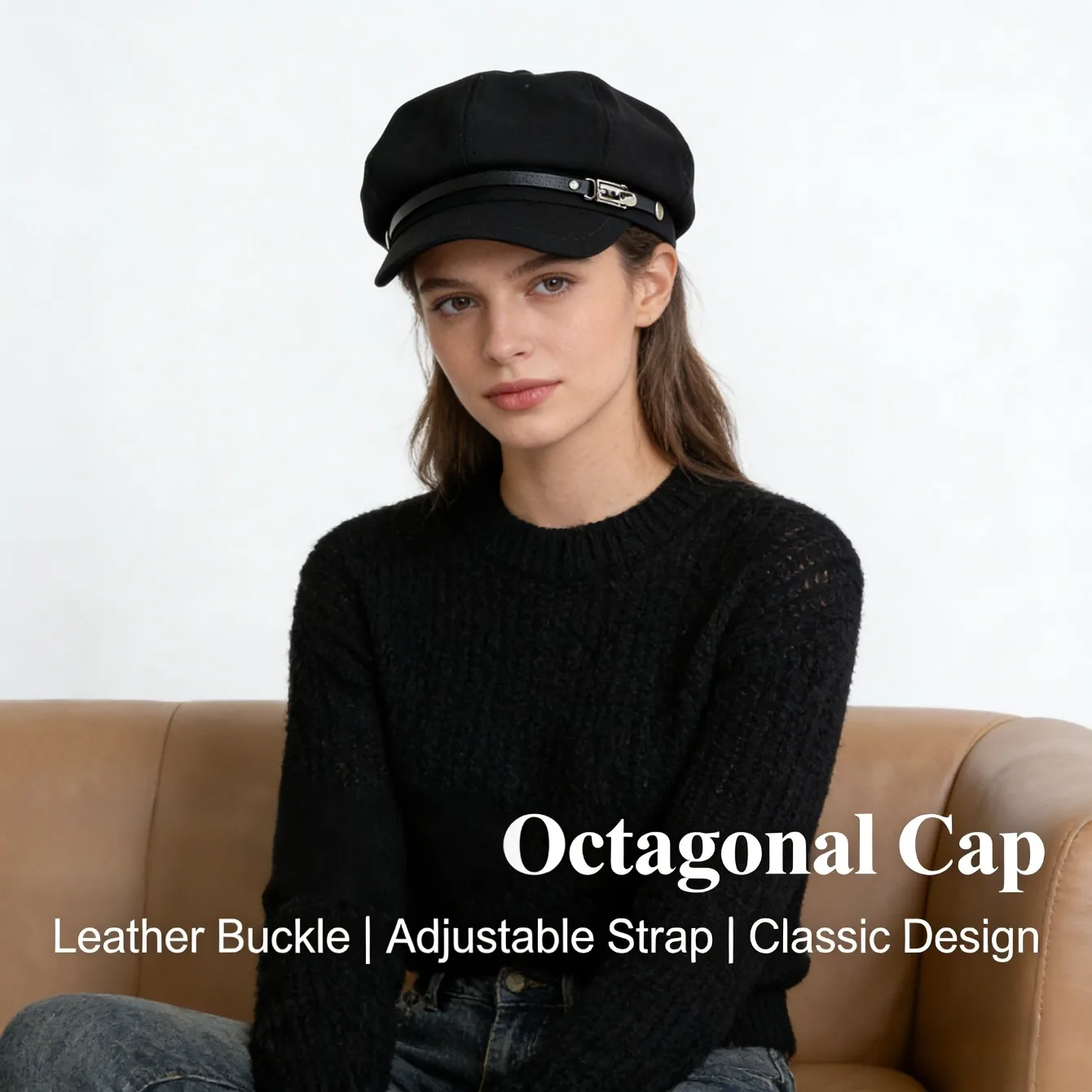 Berretto ottagonale in lana con superficie morbida per pendolarismo e viaggi in autunno, taglia unica