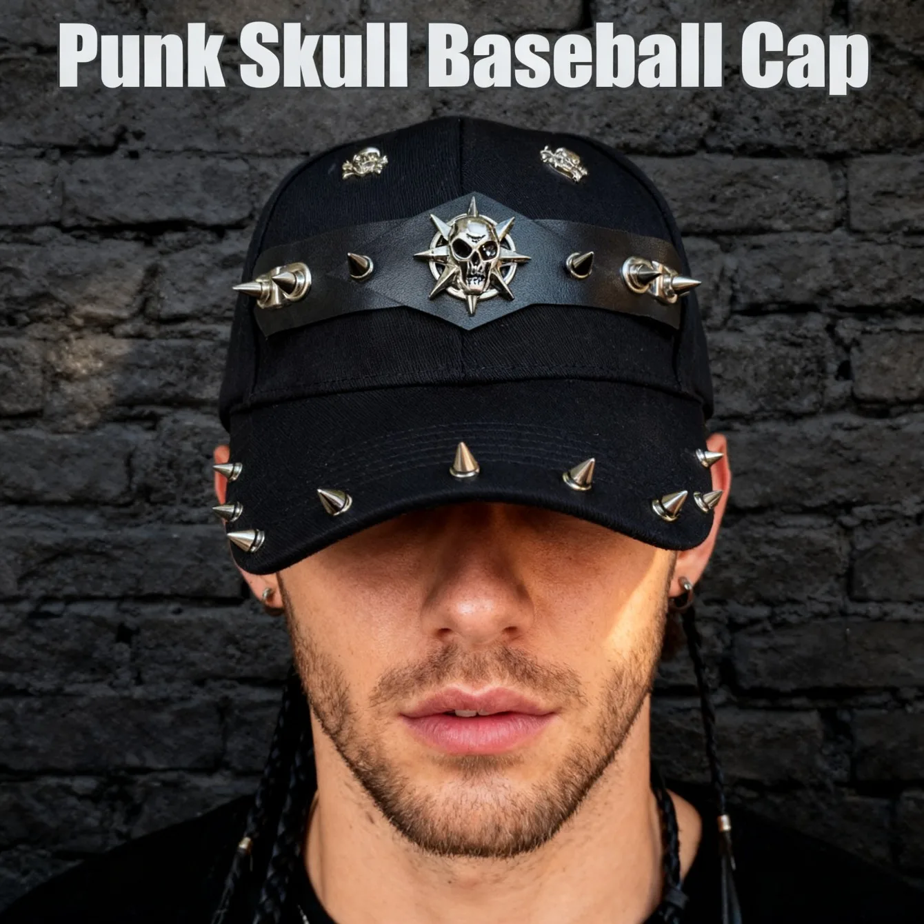 Berretto con teschio a stella stile punk Rivetto Berretto piatto con fattura streetwear tagliente Cappello unico versatile