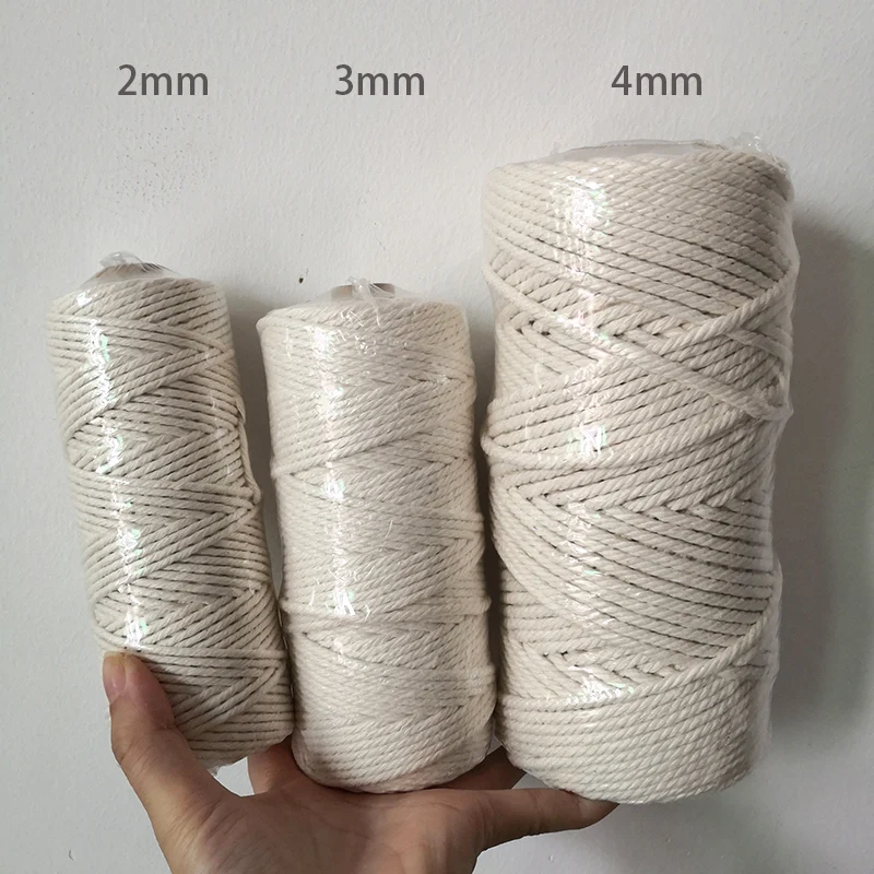 100M 3mm 4mm 2mm Macrame Corda di cotone Cavo intrecciato per corda beige fatta a mano fai da te Accessori per la casa di nozze Regalo E2