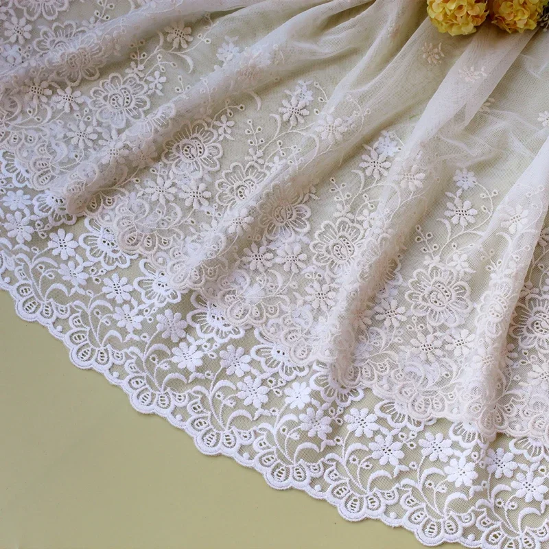 Finiture in pizzo ricamato in cotone, accessori da cucito, larghezza 21 cm, gonna fatta a mano fai-da-te, tende da letto, tessuto in pizzo, colori 2 metri
