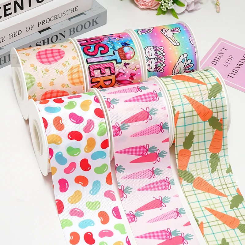 Nastro in Grosgrain stampato Happy Easter del fumetto fai da te per forniture artigianali accessori per cucire 5 yarde. 87608