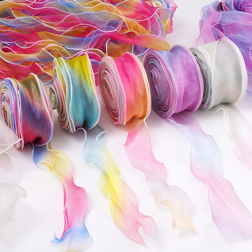 22 metri/rotolo arcobaleno gradiente ad alta densità poliestere nastro colorato materiale fai da te cottura imballaggio vestiti copricapo decorativo