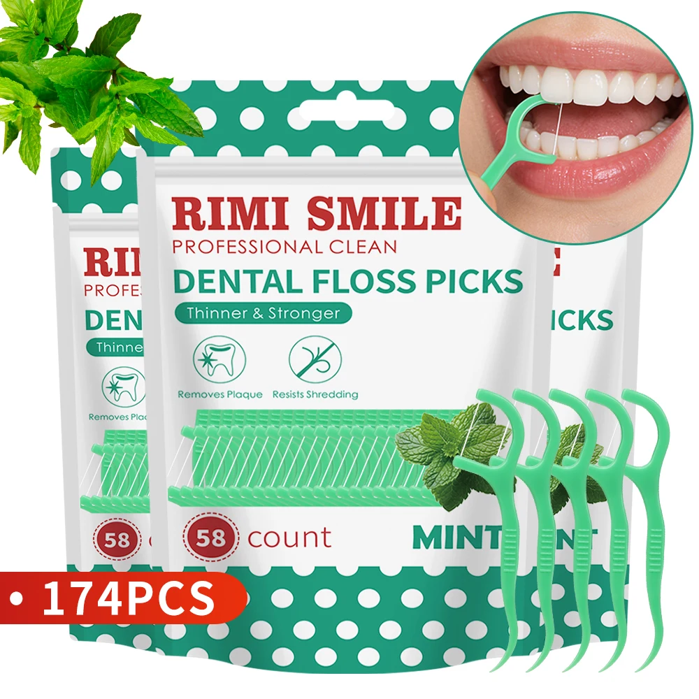 174 Pezzi di Filo Interdentale alla Menta, Bastoncini Sottili e Resistenti per Pulizia Profonda, Rimuovono Placca e Residui di Cibo, Gusto Fresco di Menta