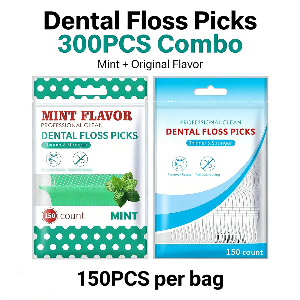 300 Pezzi di Filo Interdentale Ultra-Fine alla Menta, Confezione Famiglia, Stuzzicadenti per una Pulizia Efficace di Denti e Gengive, Essenziale per l'Igiene Orale Quotidiana