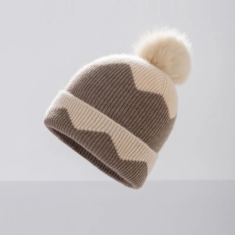 Cappello da donna in cashmere 100% lavorato a maglia Comodo, caldo, color block Inverno Vendita calda Nuovo cappello con cappuccio in cashmere da donna ATTYWS crusca