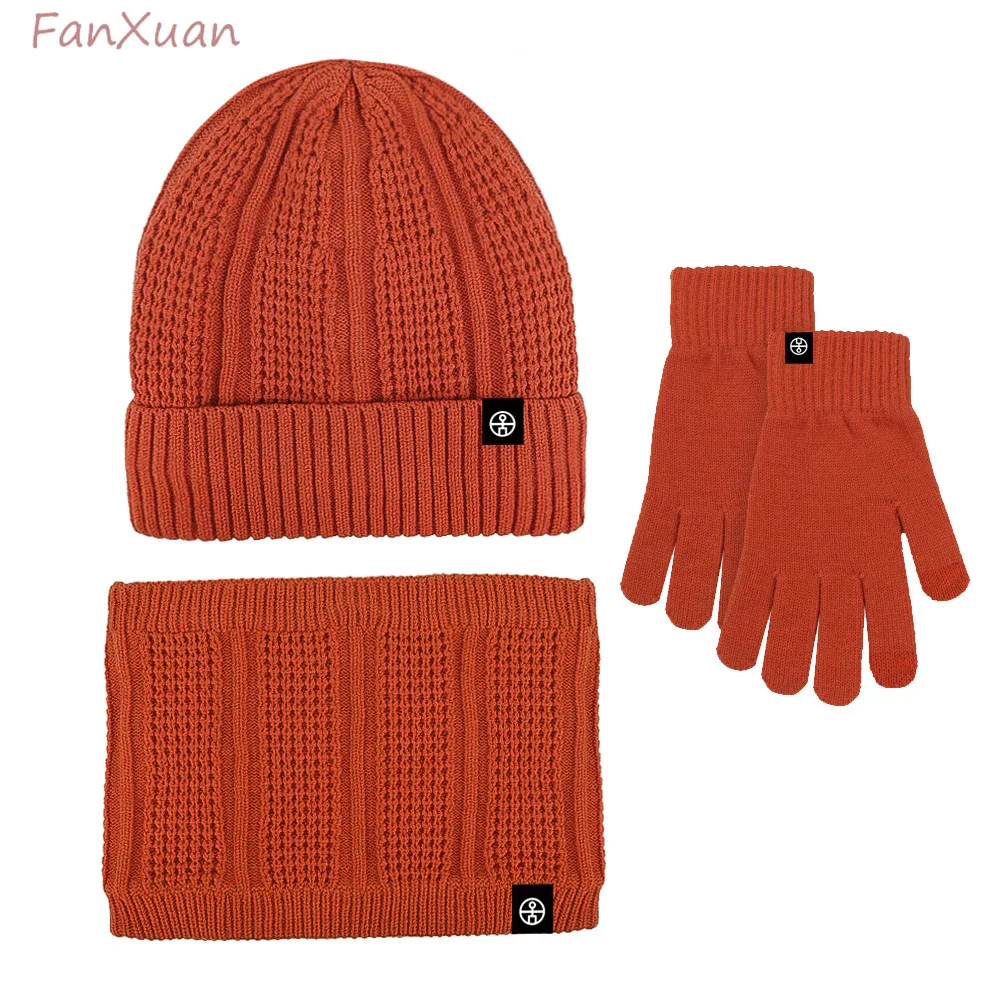 3 pezzi cappelli invernali sciarpa guanti set per donna fodera in peluche spesso doppi strati berretti set snood femminile viola arancione verde blu