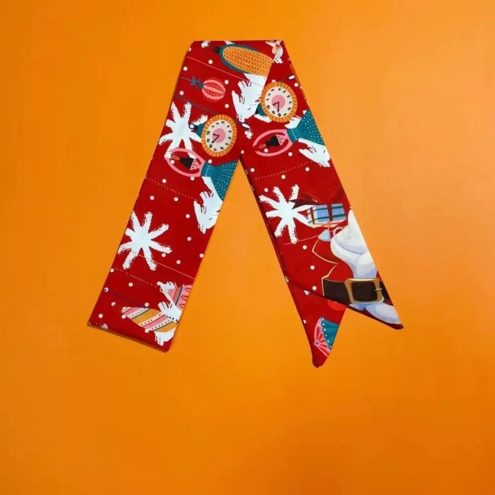 Elegante fascia a nastro Sciarpa di seta natalizia Stampata rossa Sciarpa di Capodanno Accessori Sciarpa Fazzoletto da collo Sciarpa Fascia per capelli Donna