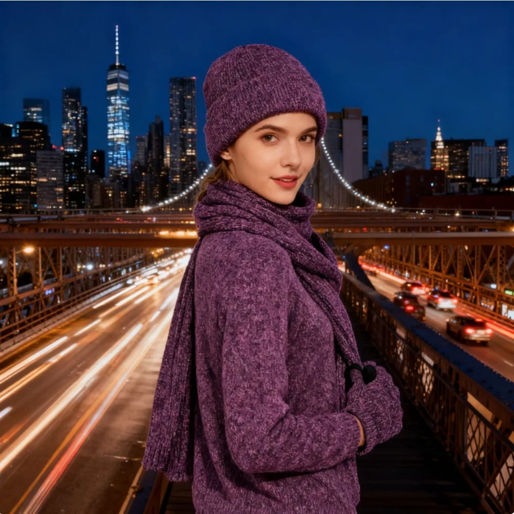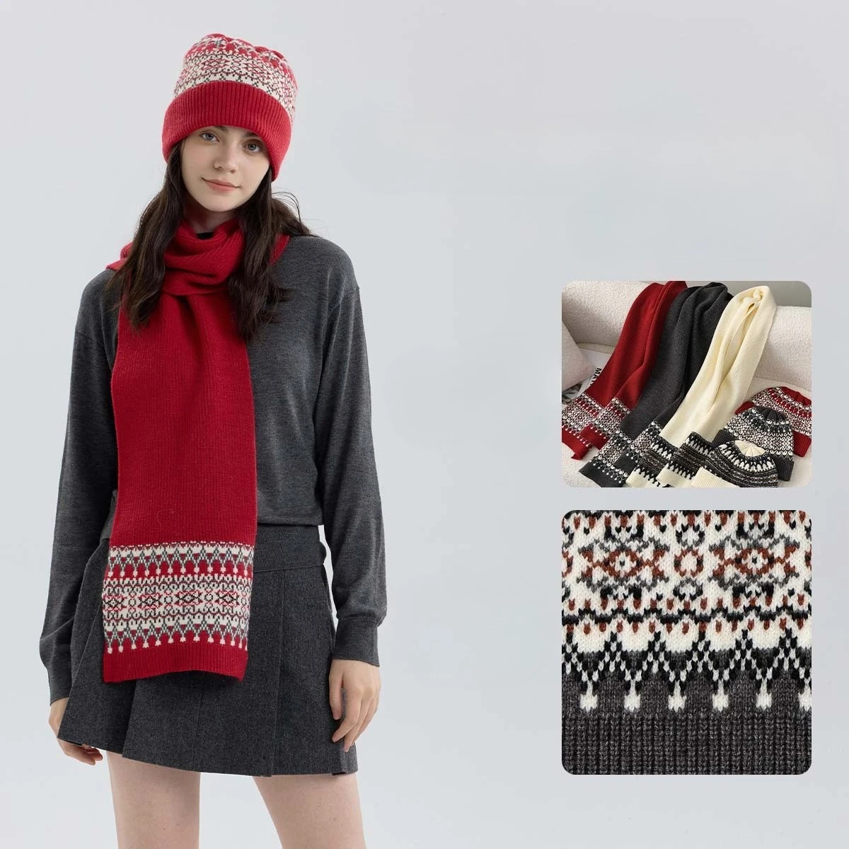 Sciarpa lavorata a maglia vintage natalizia con diamanti Set di due pezzi con sciarpa calda invernale