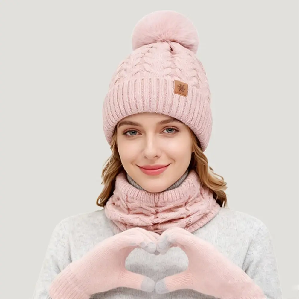 3 pezzi/set moda caldo cappello invernale sciarpa guanti touchscreen cappello lavorato a maglia antivento protezione del collo sciarpa berretto da esterno
