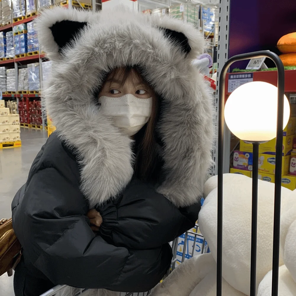 Scaldacollo antivento Vixen Ear Beanie Hat Addensare resistente al freddo Sciarpa con cappuccio integrata Sciarpa morbida con cappuccio in pelliccia sintetica invernale