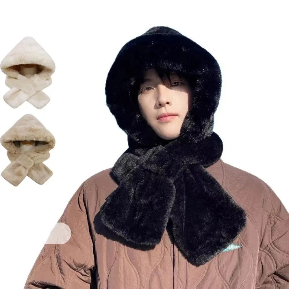 Sciarpa con cappuccio integrata invernale in peluche carino Sciarpa con berretto caldo antivento Sciarpa con protezione per le orecchie casual ispessita Ciclismo