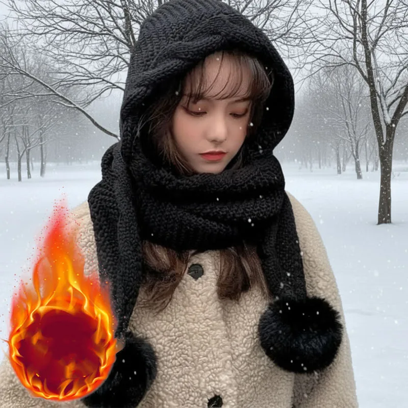 Scaldacollo antivento Vixen Ear Beanie Hat Addensare resistente al freddo Sciarpa con cappuccio integrata Sciarpa morbida con cappuccio in pelliccia sintetica invernale