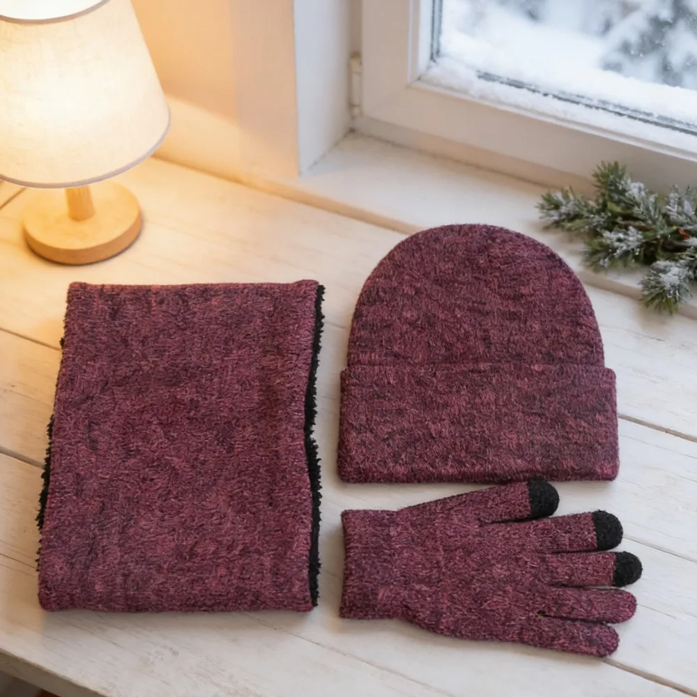 Guanti touch screen con sciarpa per cappello in tre pezzi foderati in pile invernale caldo