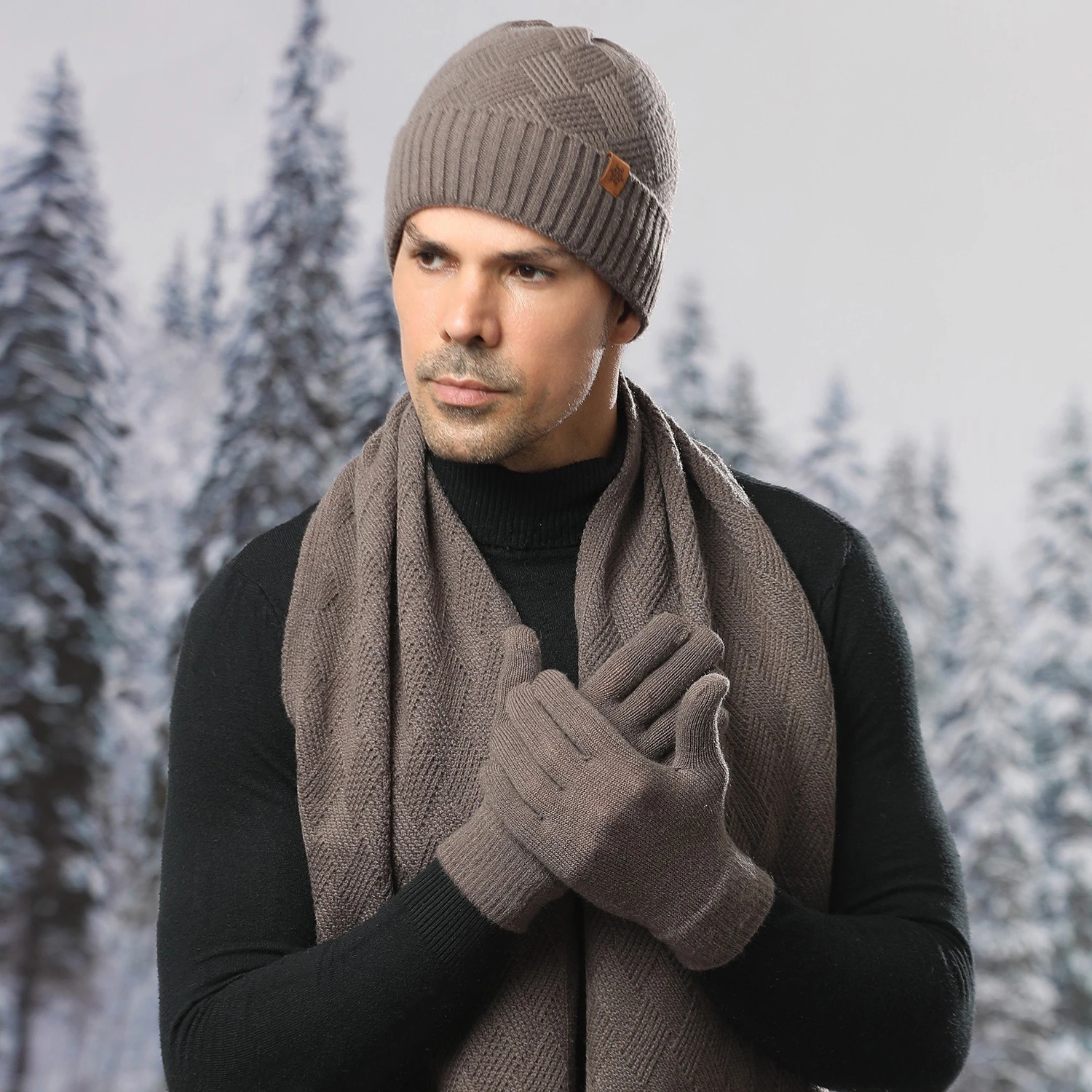 Set invernale da uomo da 3 pezzi, berretto, sciarpa e guanti touchscreen, accessori invernali in maglia calda, morbida ed elegante