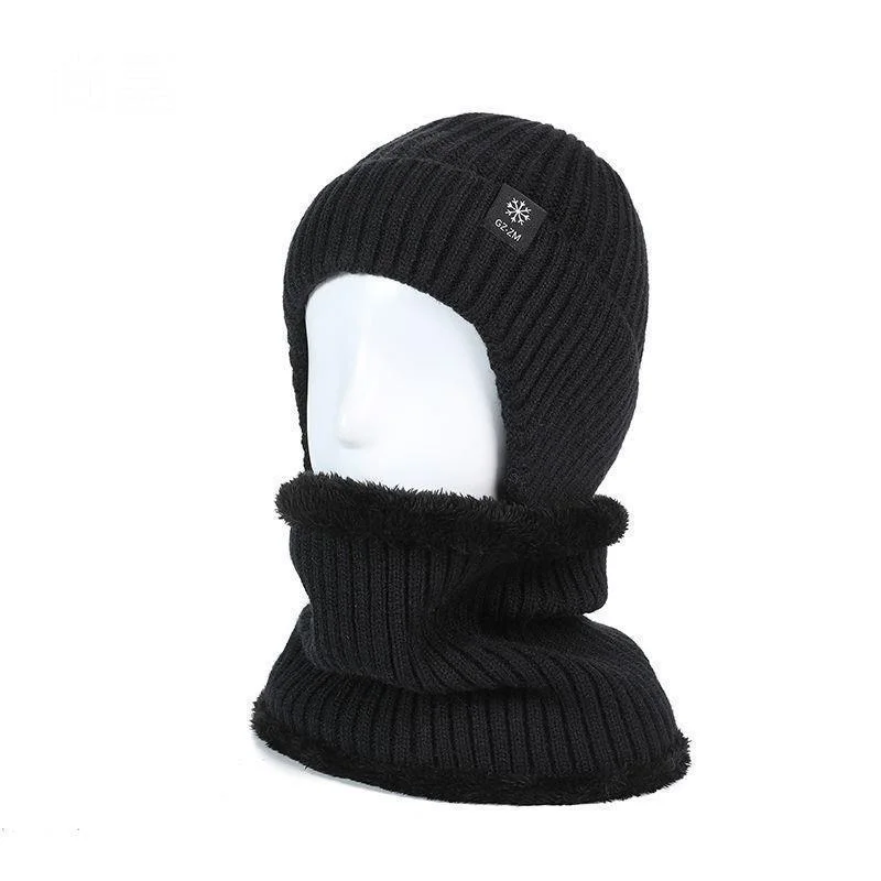 Cappello autunno/inverno da uomo + sciarpa Set di protezione per le orecchie caldo invernale Cappello in tinta unita traspirante in lana lavorata a maglia spessa