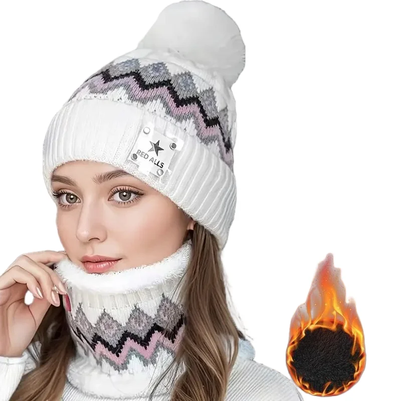 Set di berretti con sciarpa lavorata a maglia coreana con cappello a strisce alla moda da donna in lana Set da equitazione antivento per esterni Set caldi addensati invernali