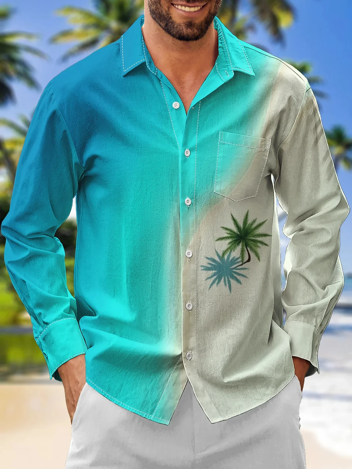 Camicia a maniche lunghe da uomo con tasche sfumate a cocco, stile hawaiano, è la scelta perfetta per le vacanze