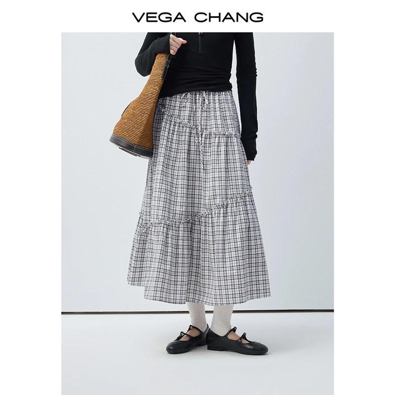 Vega Chang Nuova Gonna Casual a Quadri Primaverile e Autunnale per Donna Giovanile