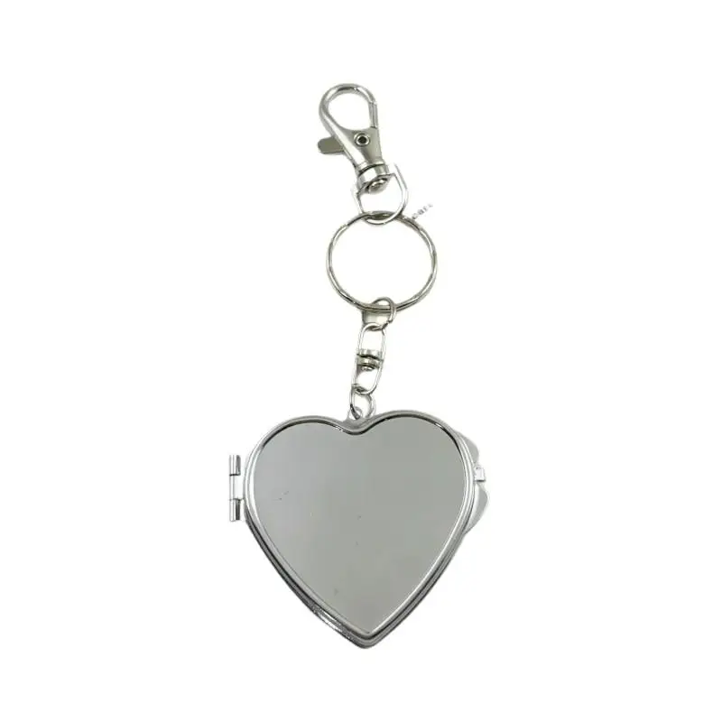 Portachiavi con specchio pieghevole Flip Portachiavi con specchio tascabile da viaggio Portachiavi in metallo ellittico a forma di cuore Ciondolo per fotocamera per telefono anti-smarrimento