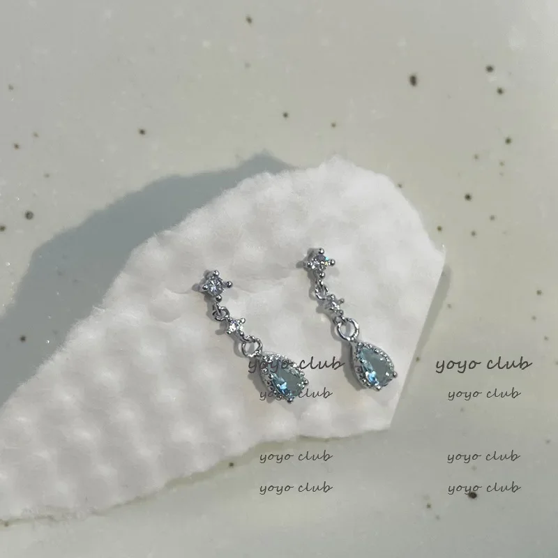 Orecchini coreani di fascia alta con zirconi a goccia d'acqua blu Orecchini a bottone versatili di lusso leggeri di nicchia Accessori per gioielli in cristallo lucido