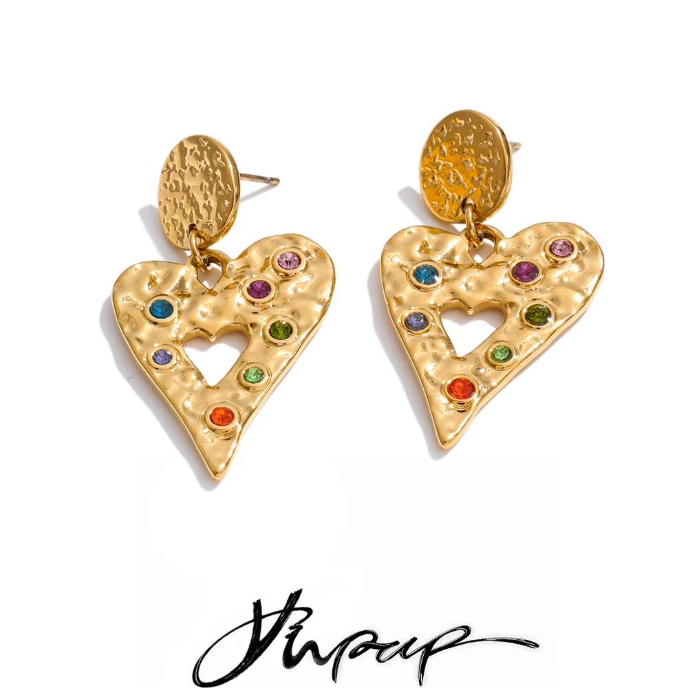 Yhpup Orecchini pendenti a forma di cuore in metallo con zirconi colorati, gioielli con ciondoli di tendenza in acciaio inossidabile, accessori antiallergici