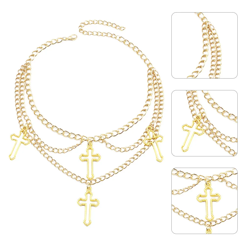 Collana con Ciondolo Gotico Dorato a Più Strati, Gioiello di Tendenza per Donne, Collana con Ciondolo a Croce