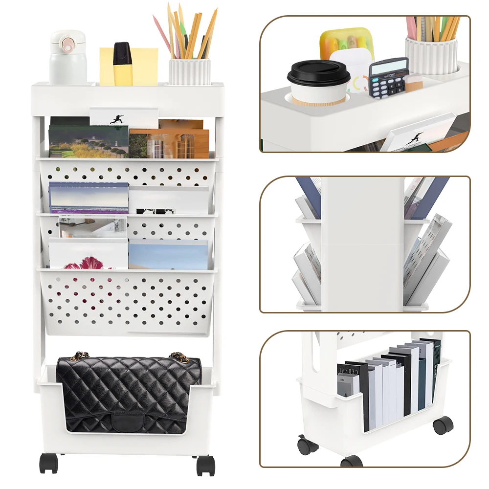 Scaffale Mobile a 5 Ripiani, Pratico Contenitore per Archiviazione Domestica, Versatile per Documenti Cesto portaoggetti con ruote rimovibili e libreria mobile