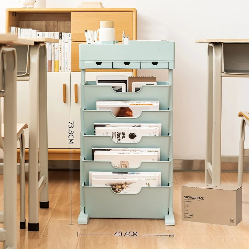 Portariviste da soggiorno Libreria in ferro Scaffale multistrato da pavimento Organizzatore di stoccaggio mobile Ruote Libri Giocattoli Mobili
