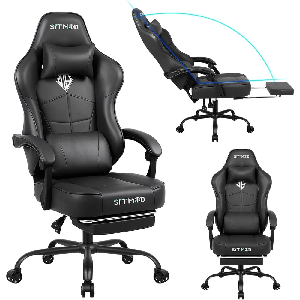 Sedia da gaming WOTSTA con poggiapiedi Sedie da gamer ergonomiche con cuscino lombare Poggiatesta Sedia da computer regolabile in altezza