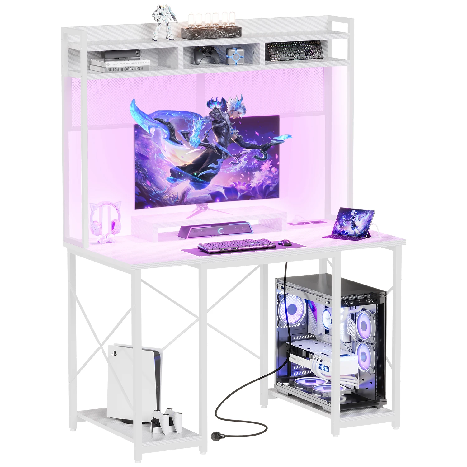 Devoko Tavolo da gaming con illuminazione a LED, scrivania Placer fai da te 120x60 cm con porta USB e presa